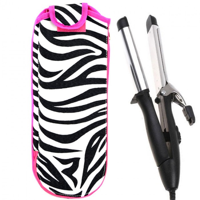 BLACK/WHITE ZEBRA PRINT W/PINK LINNING FLAT OR CURLING IRON HOLDER