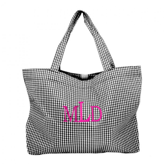BLACK/WHITE GINGHAM SHOPPING BAG