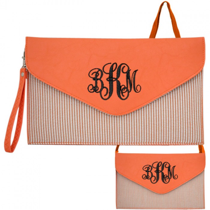 RED SEER SUCKER LEATHER CLUTCH / CROSS BODY / SHOULDER BAG