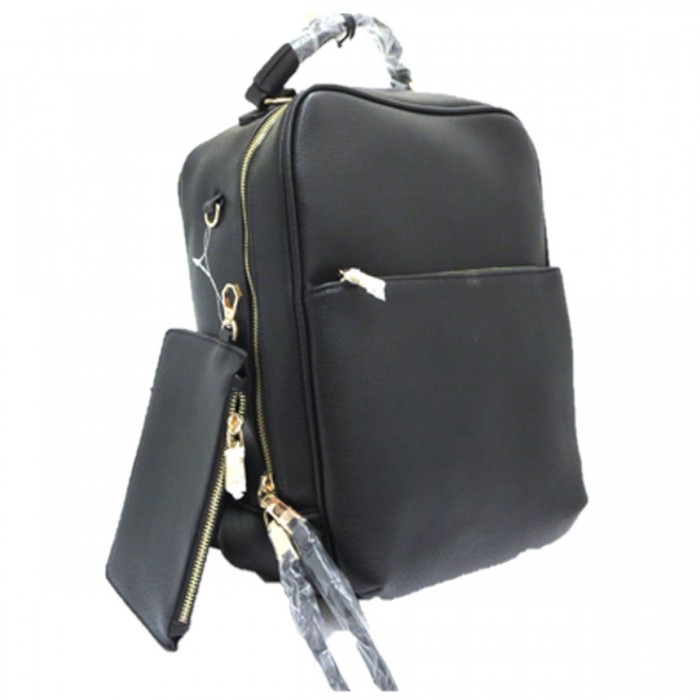 L1443-BLACK PU LEATHER MEDIUM BACKPACK WITH COIN BAG