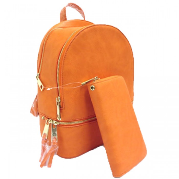 LP1062-MUSTARD PU LEATHER MEDIUM BACKPACK WITH MATCHING WALLET