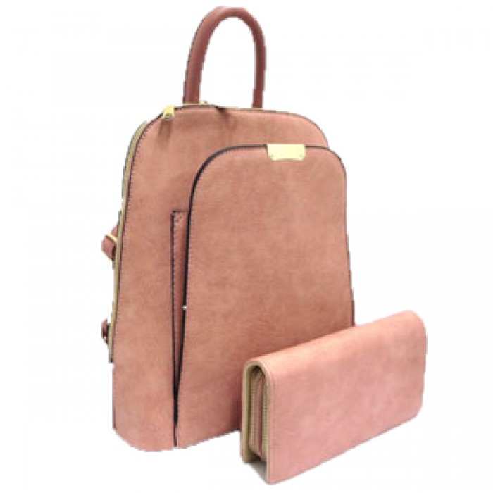 17193T2-BLUSH PINK PU LEATHER MEDIUM BACKPACK WITH MATCHING WALLET