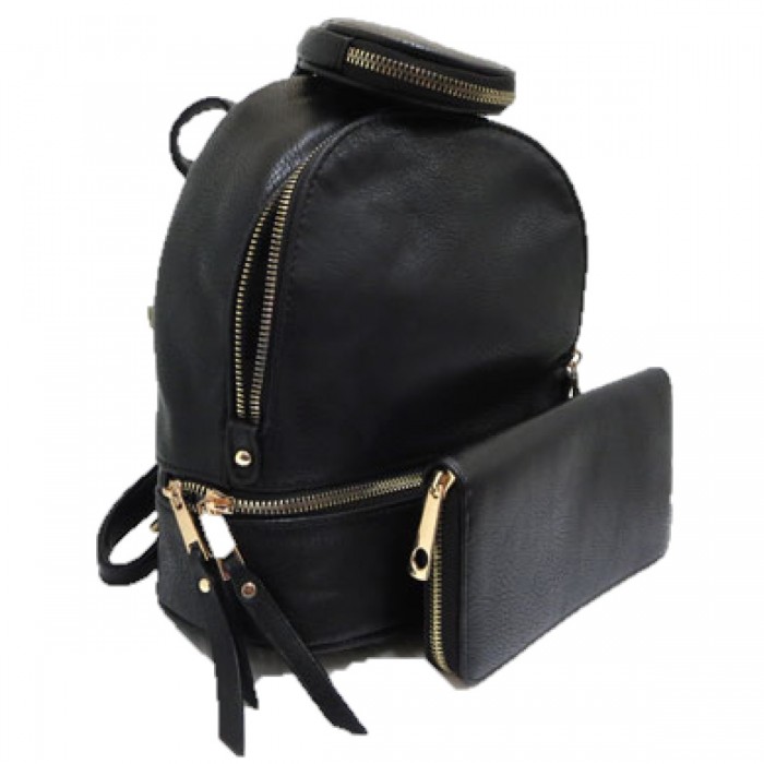 315P-BLACK PU LEATHER SMALL BACKPACK WITH A CROSSBODY AND MATCHING WALLET
