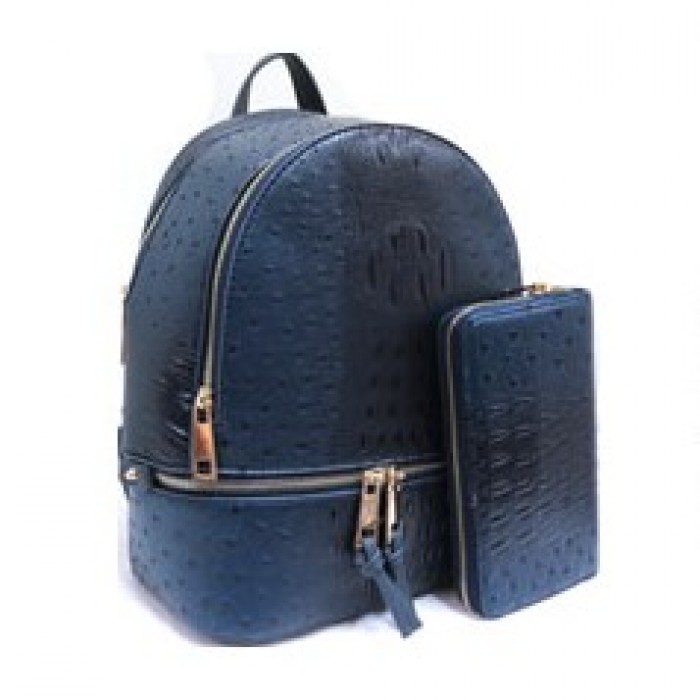 OS1062W-NAVY VEGAN OSTRICH MEDIUM BACKPACK WITH MATCHING WALLET