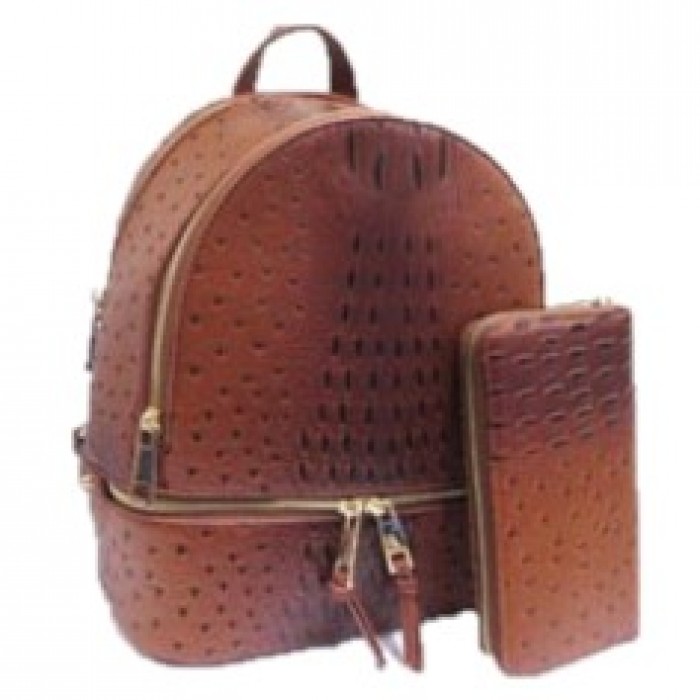 OS1062W-CAMEL VEGAN OSTRICH MEDIUM BACKPACK WITH MATCHING WALLET