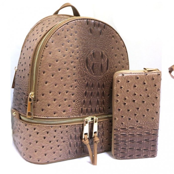 OS1062W-STONE VEGAN OSTRICH MEDIUM BACKPACK WITH MATCHING WALLET