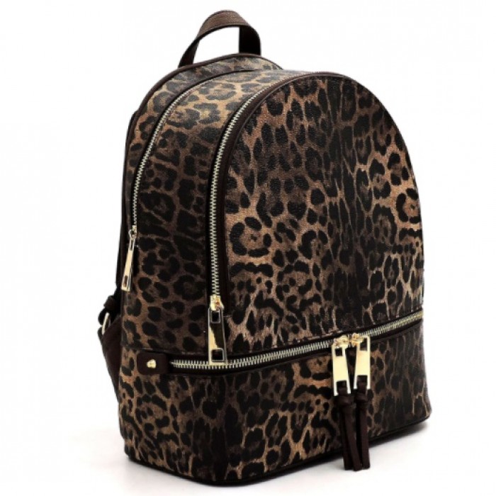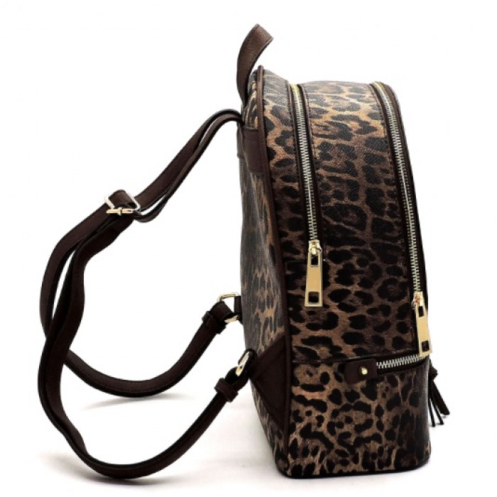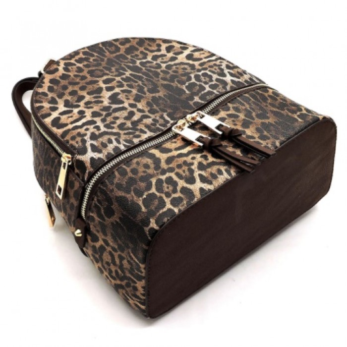 BROWN LEOPARD PU LEATHER MEDIUM BACKPACK