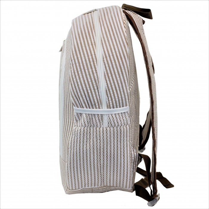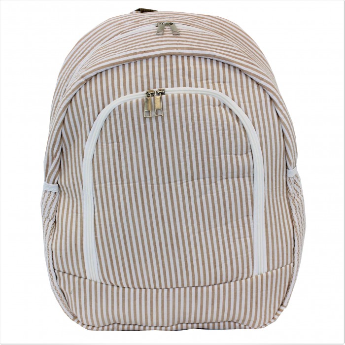 6053 - BEIGE SEER SUCKER LARGE BACKPACK