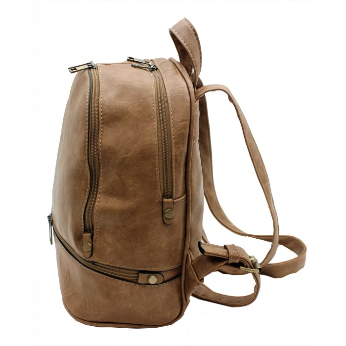 3603-TAN PU LEATHER MEDIUM BACKPACK