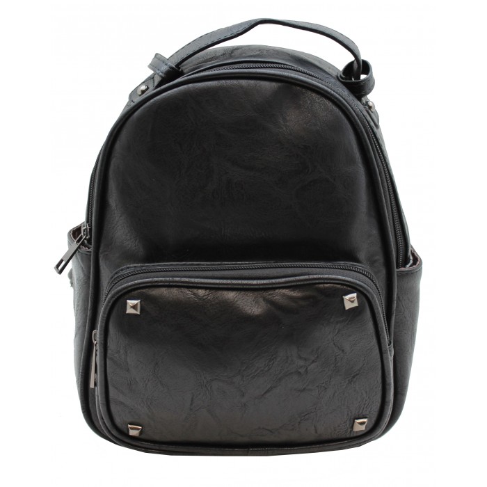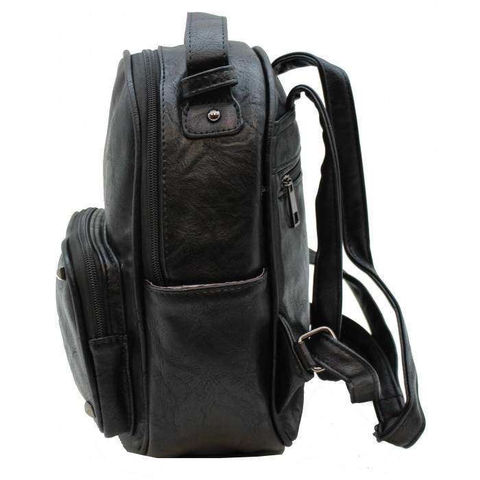 3219-BLACK PU LEATHER SMALL BACKPACK