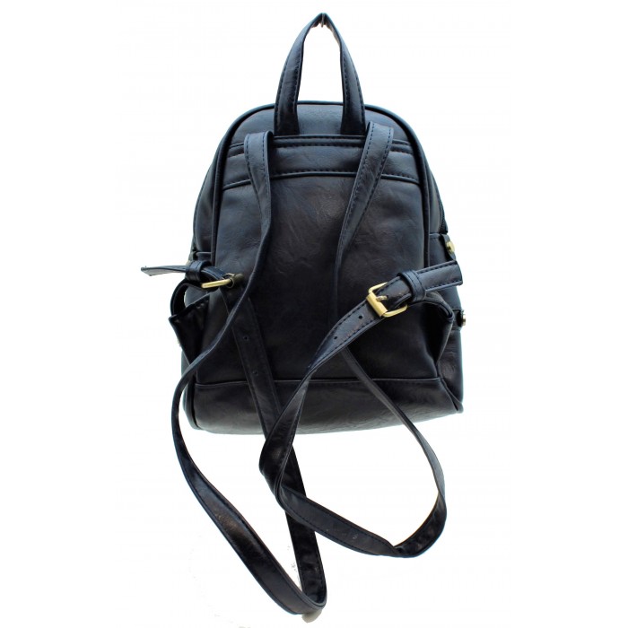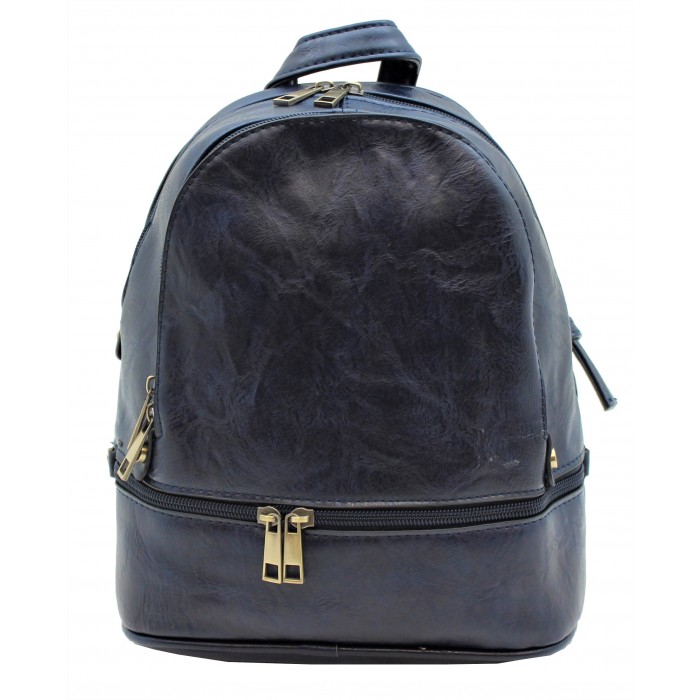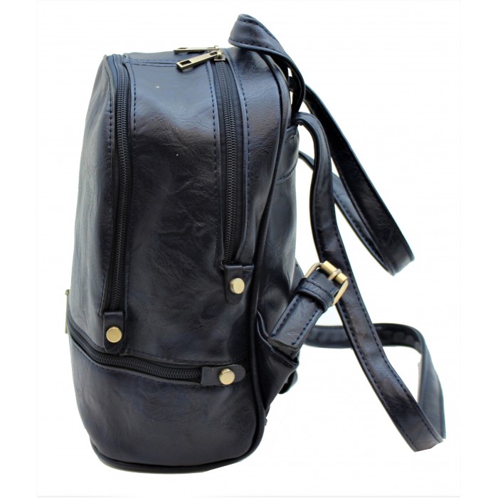 3687-NAVY PU LEATHER SMALL BACKPACK