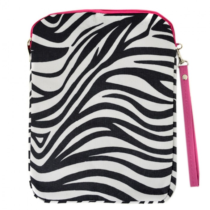BLACK/WHITE ZEBRA STRIPES W/PINK HANDLE DESIGN IPAD 2 ,3 AND NEW IPAD COVER