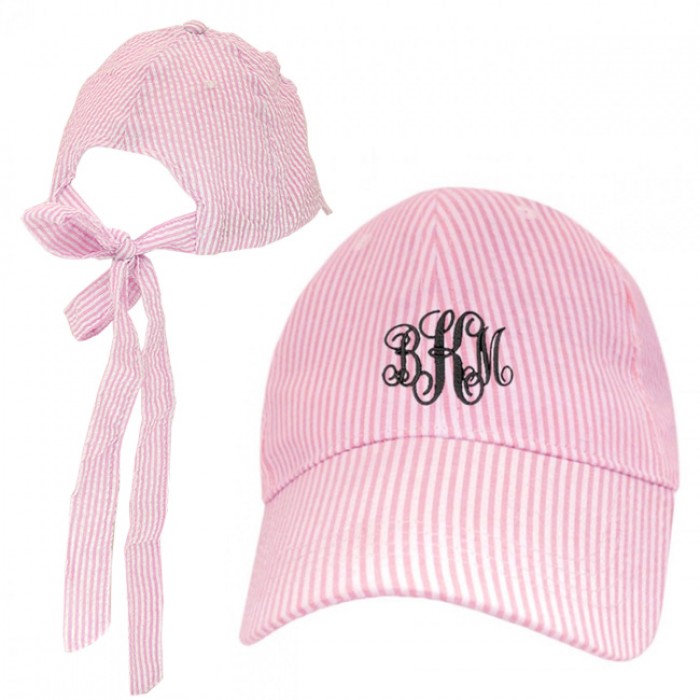 PINK  COTTON SEER SUCKER CAP W/ BOW ON BACK