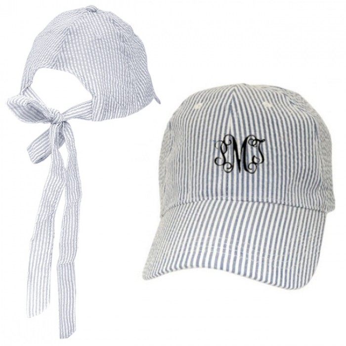 BLUE COTTON SEER SUCKER CAP W/ BOW ON BACK