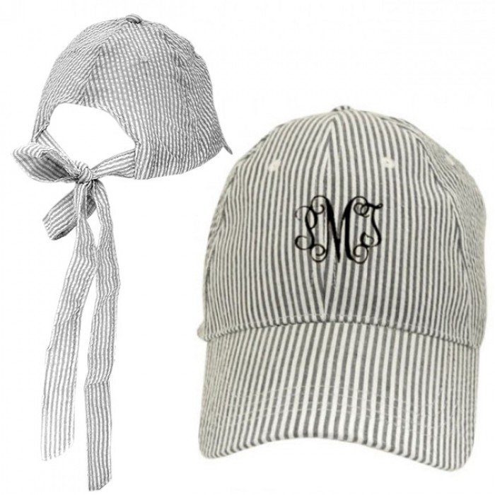 32641 - BLACK COTTON SEER SUCKER CAP W/ BOW ON BACK (MINIMUM 2)