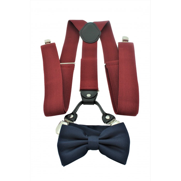 9001S/B-BURGUNDY SUSPENDER BOW TIE SET (NAVY)