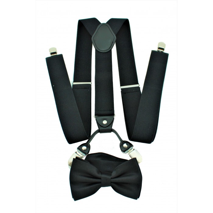 9001S/B-BLACK SUSPENDER BOW TIE SET (BLACK)