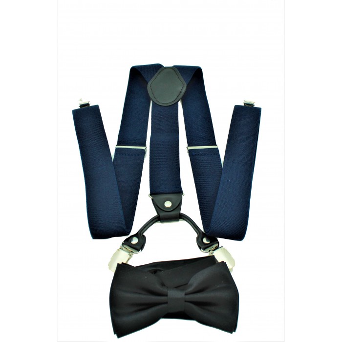 9001S/B-NAVY SUSPENDER BOW TIE SET (BLACK)