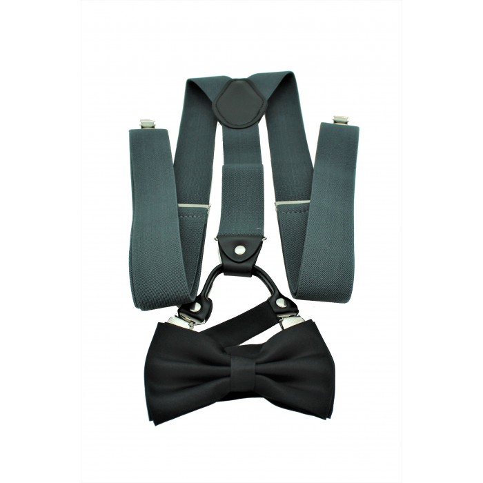 9001S/B-GRAY SUSPENDER BOW TIE SET (BLACK)