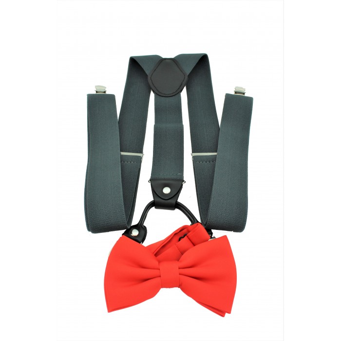 9001S/B-GRAY SUSPENDER BOW TIE SET (RED)