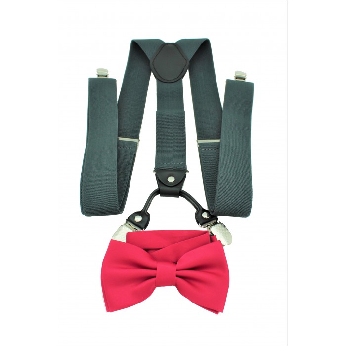 9001S/B-GRAY SUSPENDER BOW TIE SET (HOT PINK)