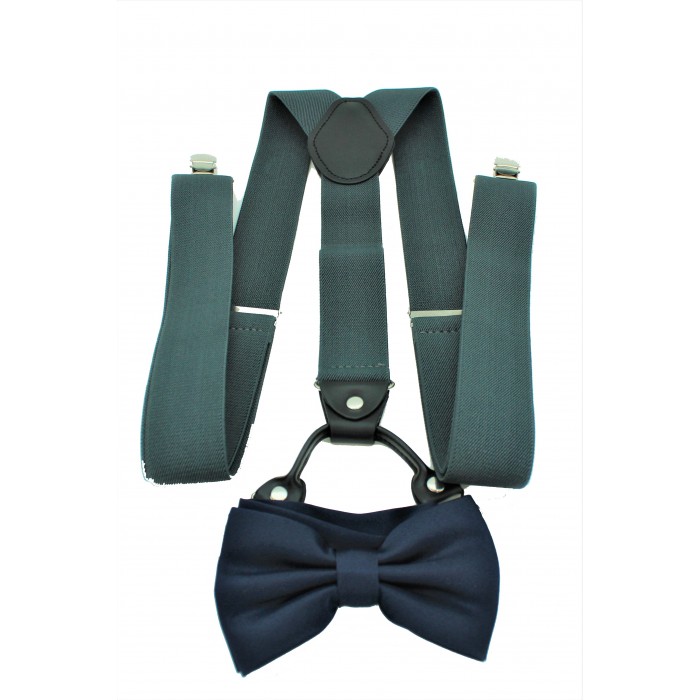 9001S/B-GRAY SUSPENDER BOW TIE SET (NAVY)