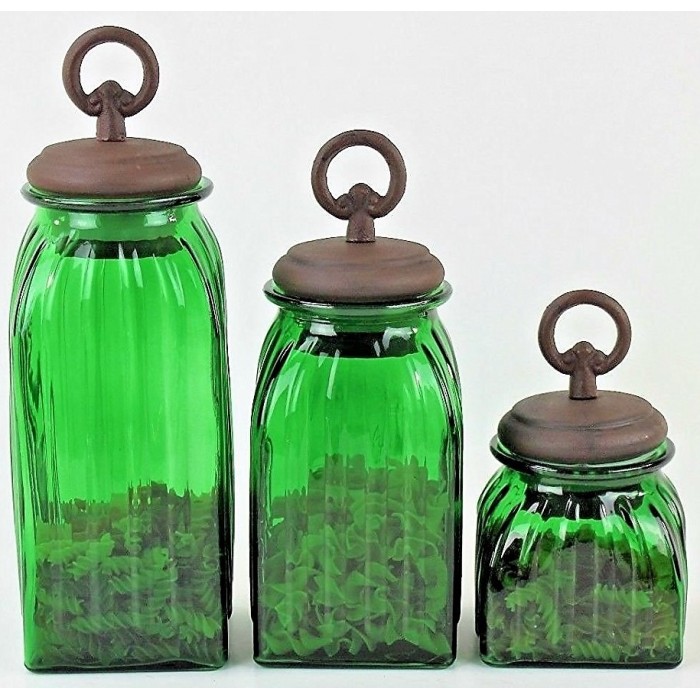 40074GREEN - SQUARE MEDIUM GREEN CANISTER SET / W COPPER RING LIDS