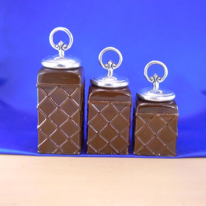 CERAMIC CANISTER SET ROPE RING W/ FDL SILVER LIDS