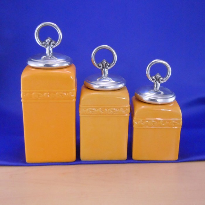 CERAMIC CANISTER SET YELLOW W/ RING SILVER LIDS