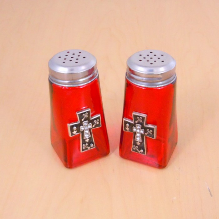 G60025R-CROSS - RED SQUARE SALT-PEPPER W / CROSS