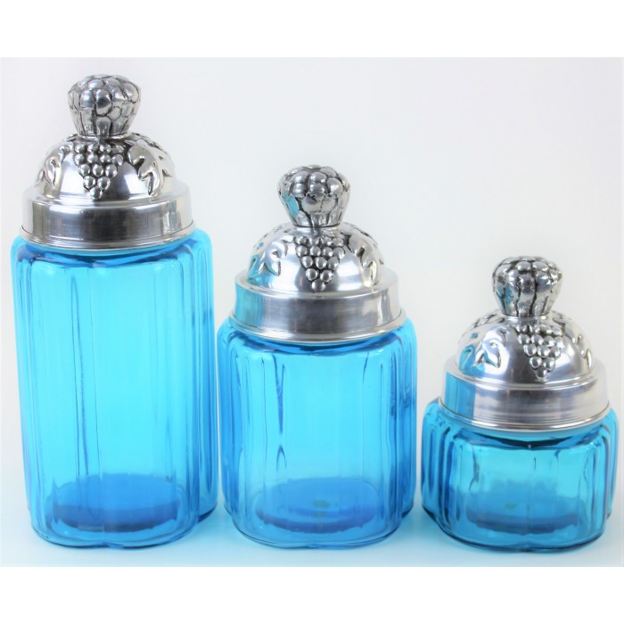 Round Small / Ocean Blue Canister Set W/SIL GRAPE