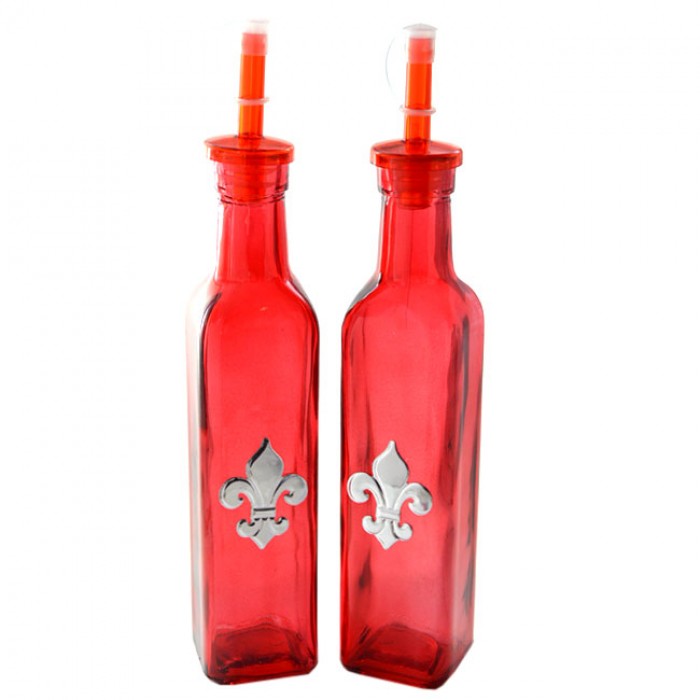9 0z. RED OIL & VINEGAR BOTTLE W/ FDL
