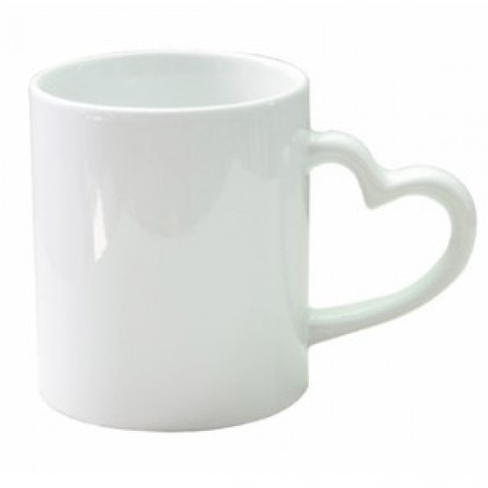 500604- WHITE/WHITE SUBLIMATION BLANK CERAMIC COFFEE MUG WITH HEART HANBNDLE