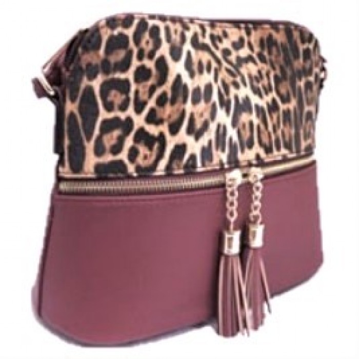 CAMEL LEOPARD VEGAN LEATHER CROSSBODY BAG