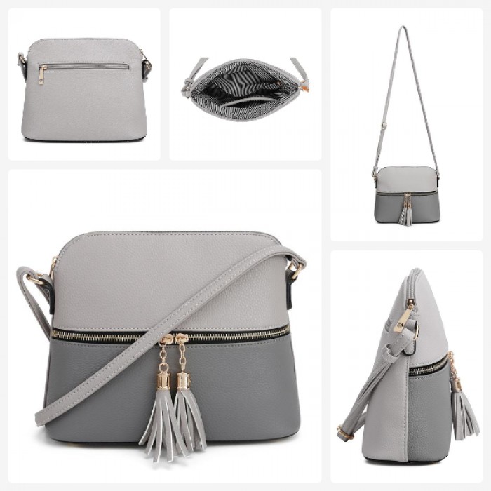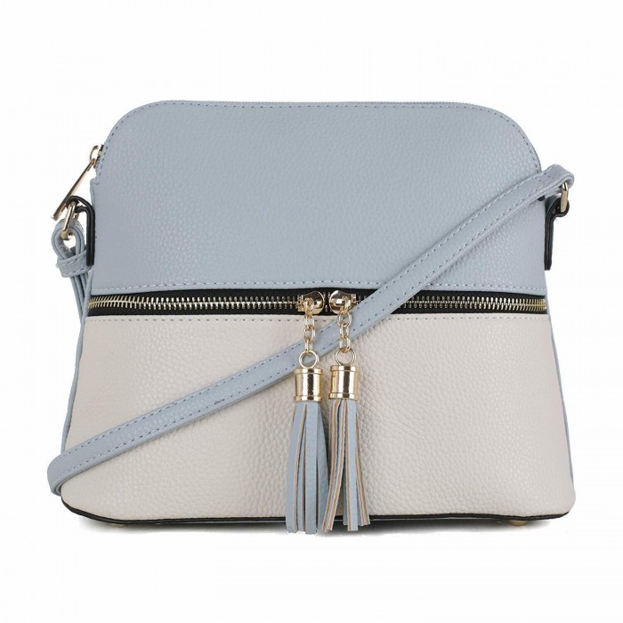 AM3031P-LIGHT BLUE/IVORY DOME VEGAN LEATHER CROSSBODY BAG