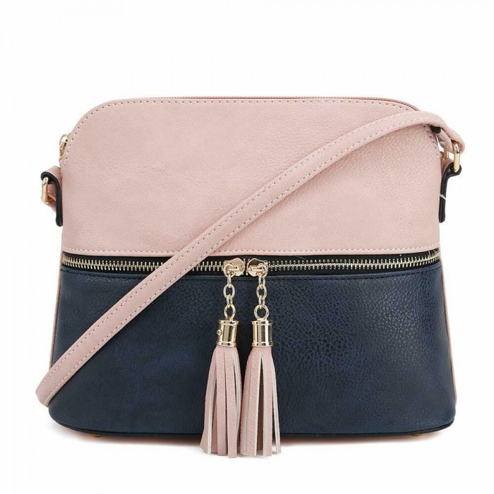 AM3031P-PINK/NAVY DOME VEGAN LEATHER CROSSBODY BAG