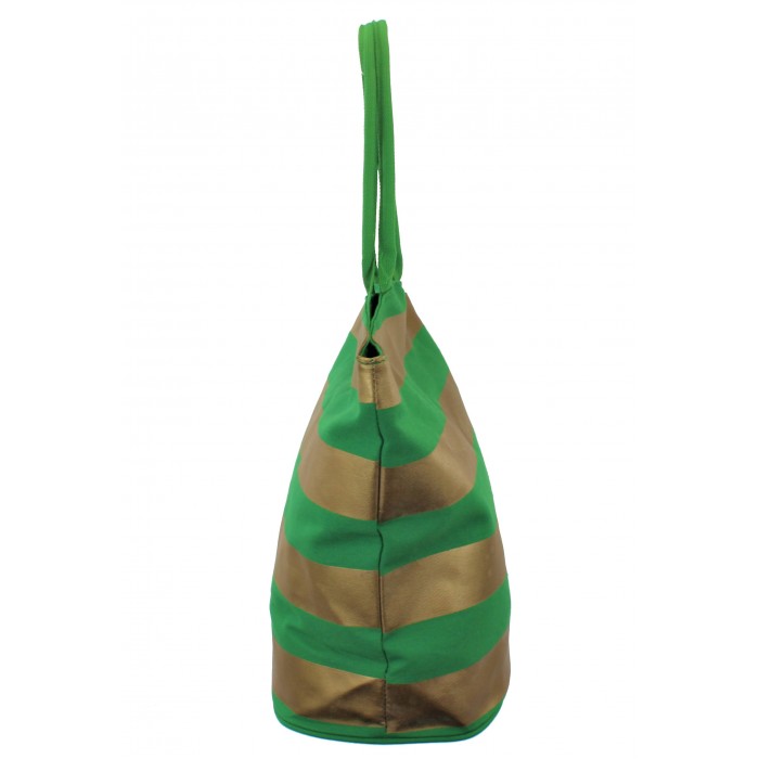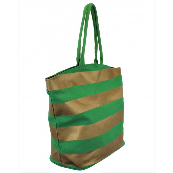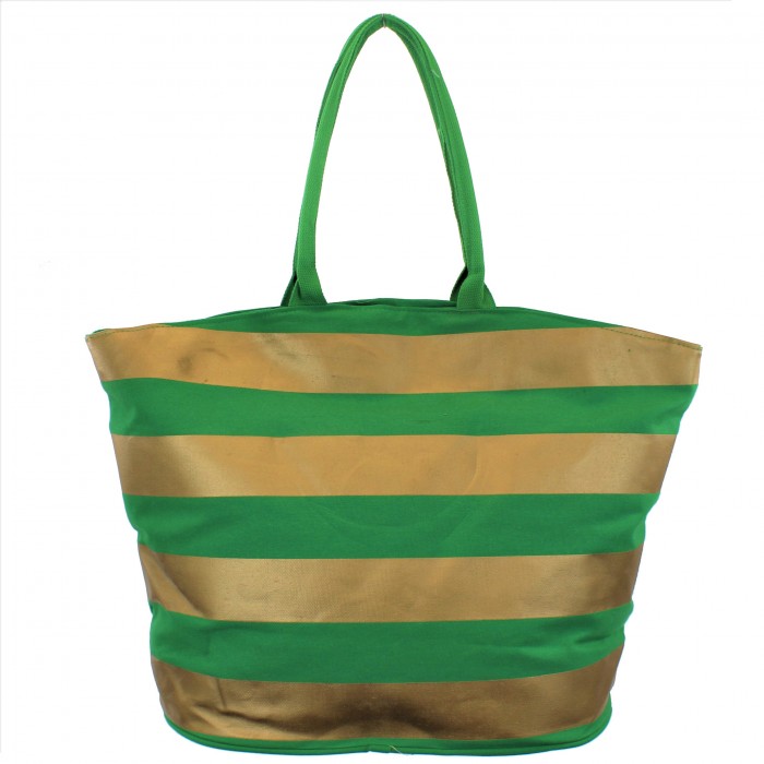 9205- GREEN & GOLD STRIPES CANVAS TOTE BAG