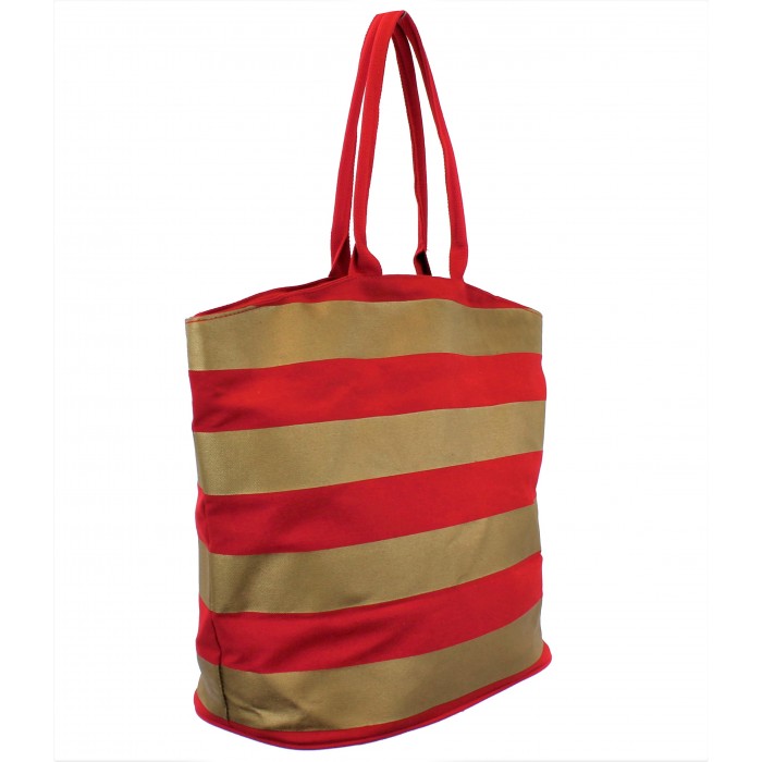 RED & GOLD STRIPES CANVAS TOTE BAG