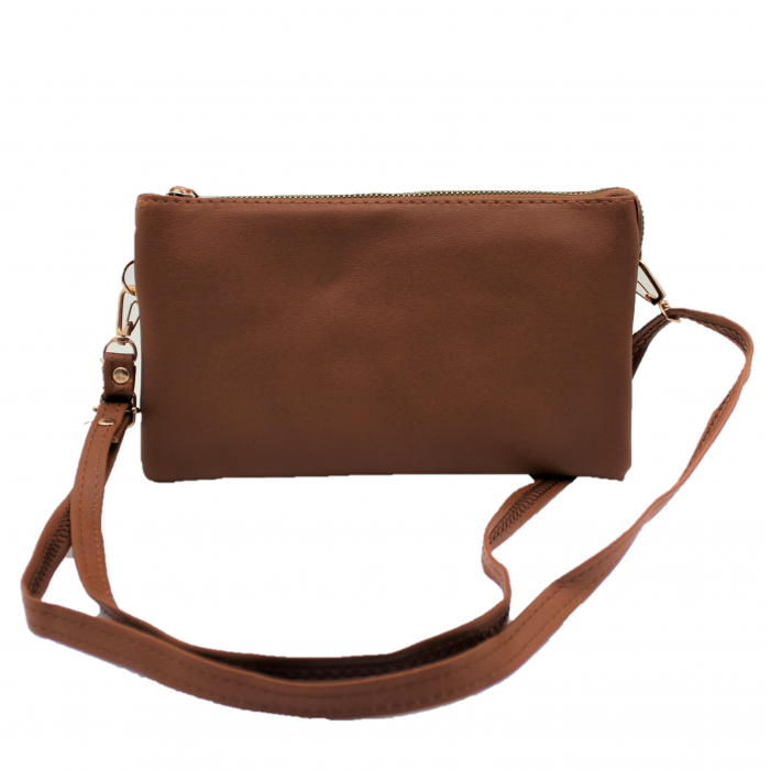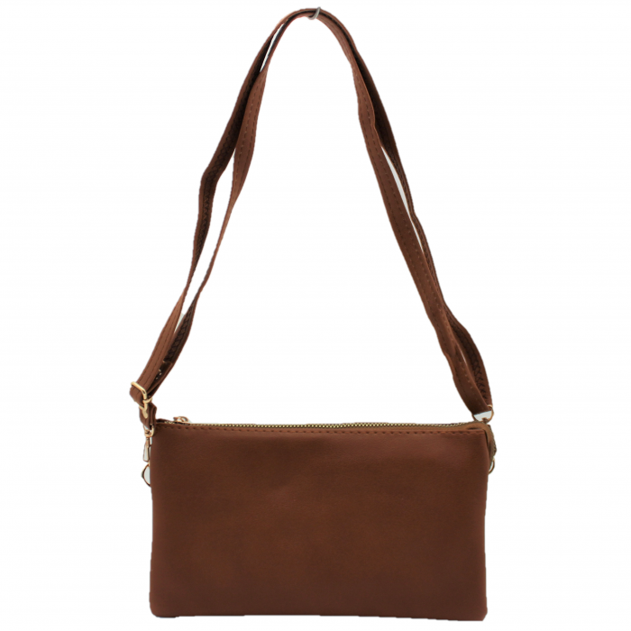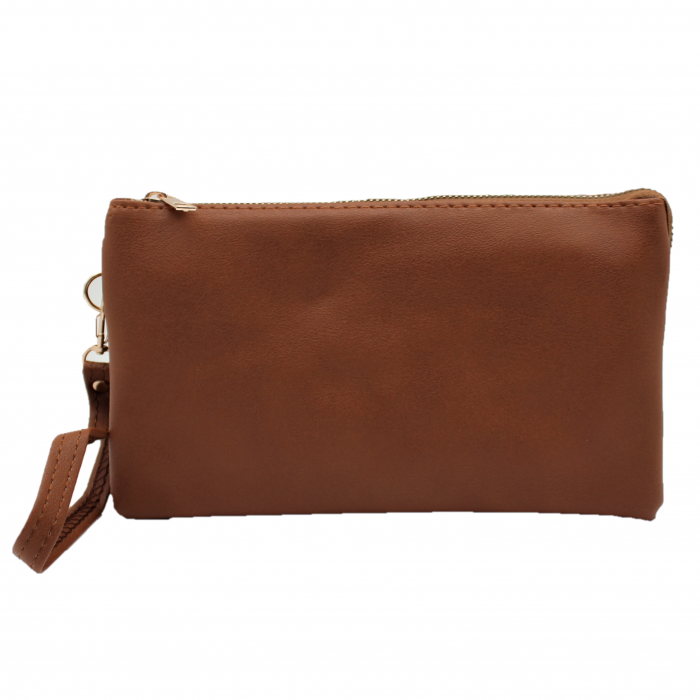 10015S- BROWN PU LEATHER TRI POCKET CLUTCH / CROSS BODY BAG