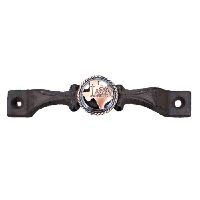 CAST IRON DRAWER PULL WITH COPPER TEXAS CONCHO