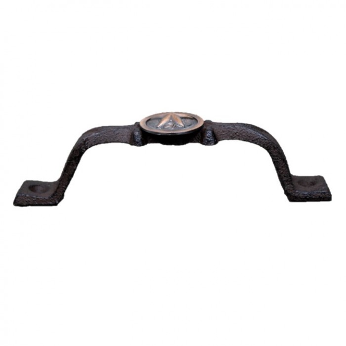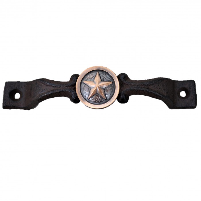 CAST IRON DRAWER PULL WITH COPPER STAR CONCHO