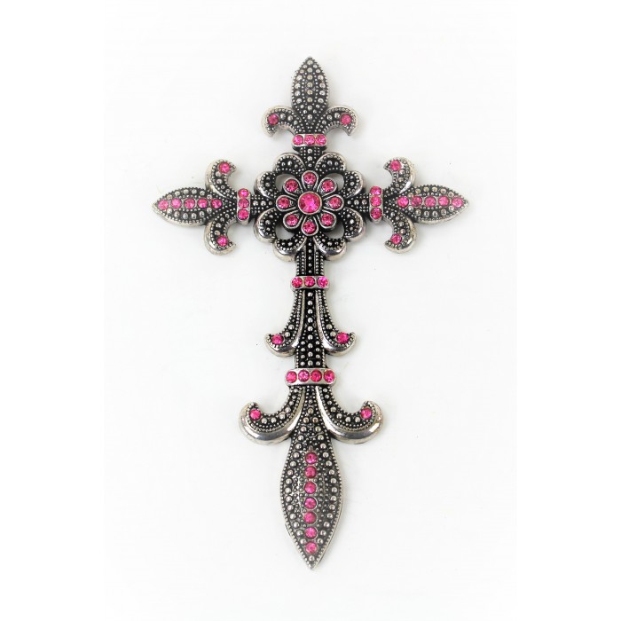 PINK CRYSTAL / SILVER WALL CROSS / W FDL DESIGN