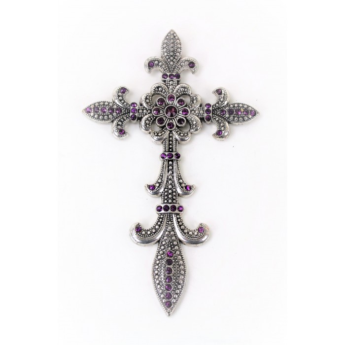 PURPLE CRYSTAL / SILVER WALL CROSS / W FDL DESIGN