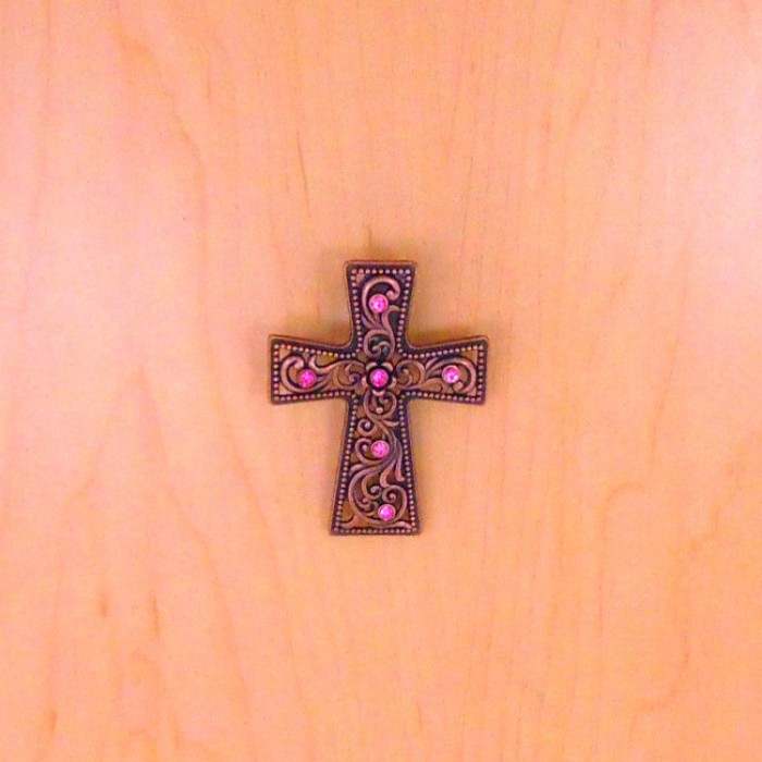 7006COP-PNK PINK CRYSTAL / SMALL COPPER WALL CROSS / W HOOK