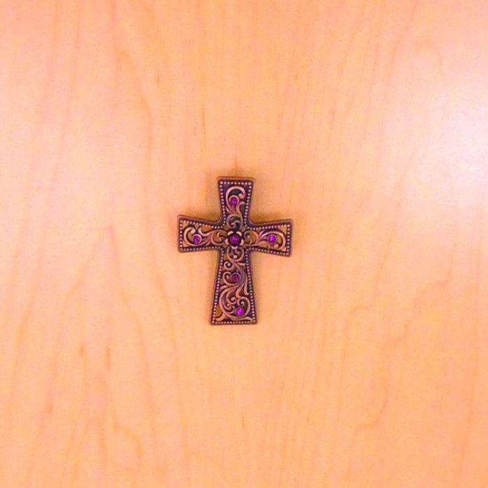 7006COP-PUR PURPLE CRYSTAL / SMALL COPPER WALL CROSS / W HOOK