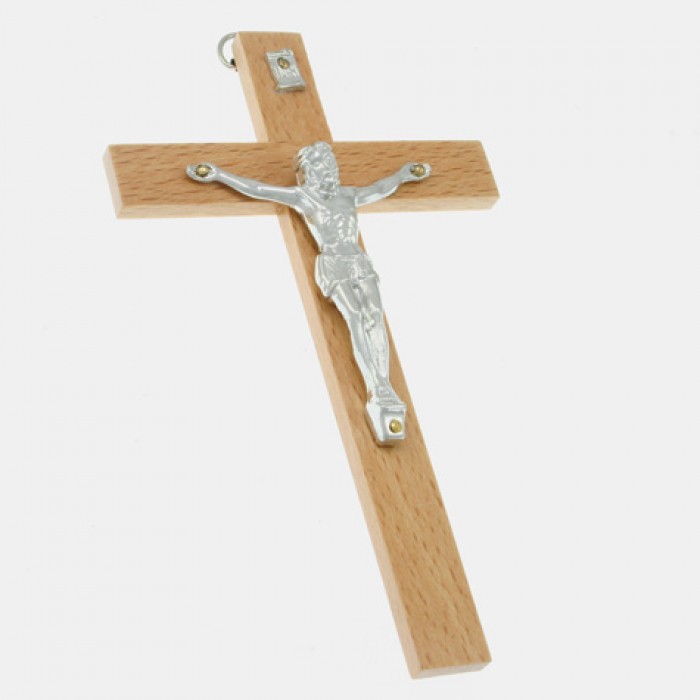 SUN1002-WOOD CROSS W/JESUS SILVER