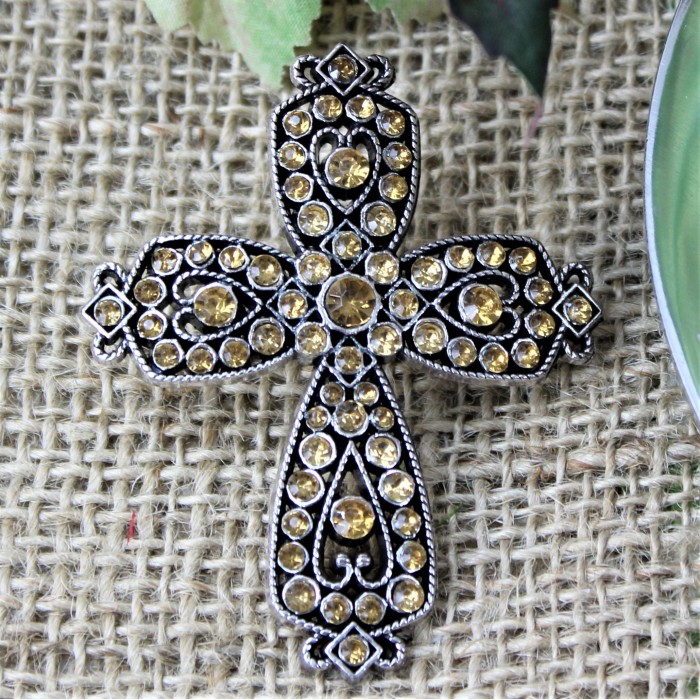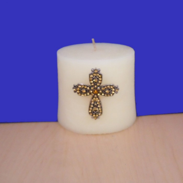 AMBER STONE CANDLE PIN / W CROSS DESIGN
