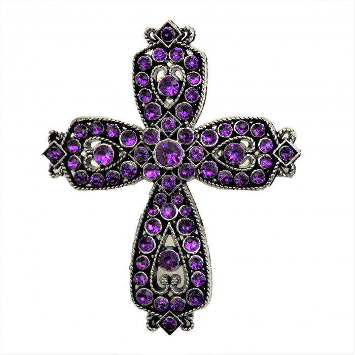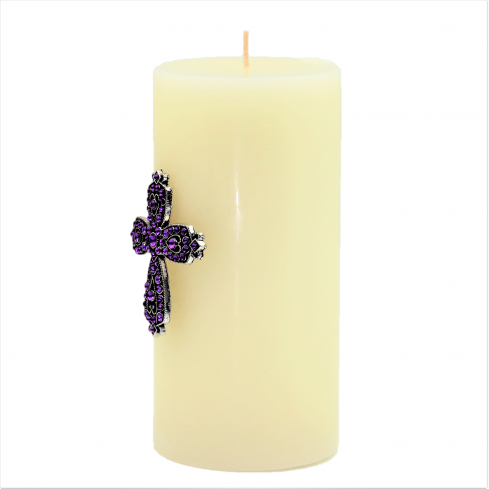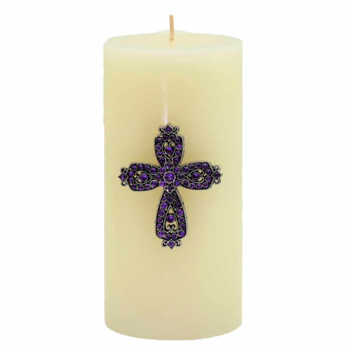 PURPLE STONE CANDLE PIN / W CROSS DESIGN