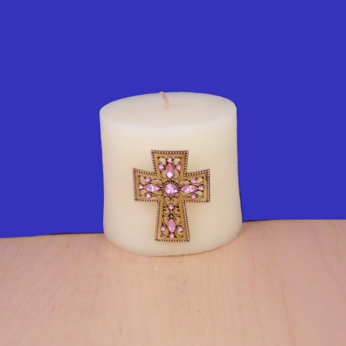 PINK STONE CANDLE PIN W / CROSS