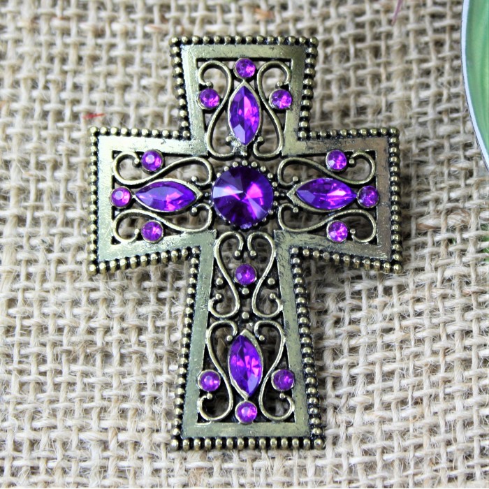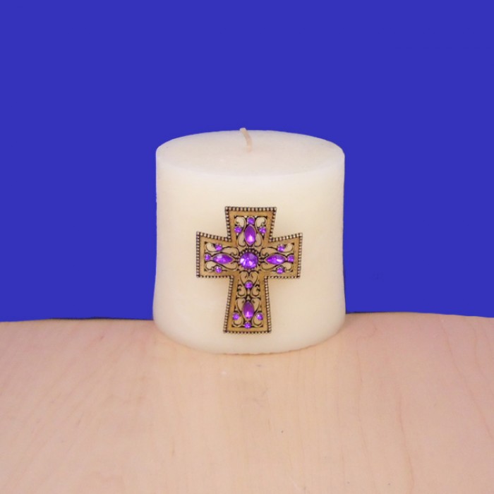 PURPLE STONE CANDLE PIN W / CROSS